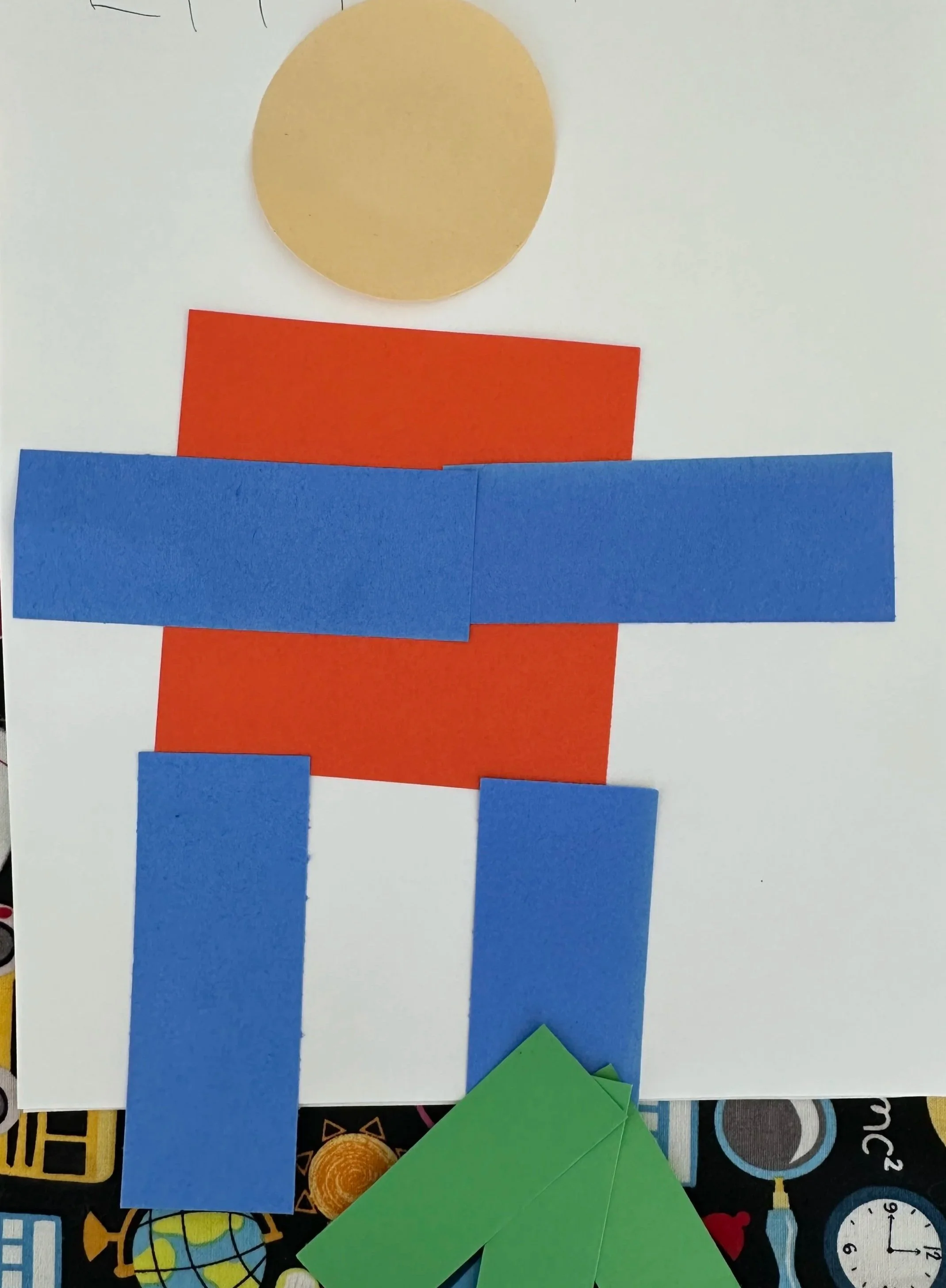We focus on art that helps them develop their fine motor skills as well as emphasizing the math concepts and thematic units that we explore every two weeks. A good example of this are the shape scarecrows they made for our Autumn unit. They had a variety of shapes to use to create what their version of a scarecrow would be. This helped to review our math unit on shapes as well as develop the concept of a scarecrow and how farms use them.